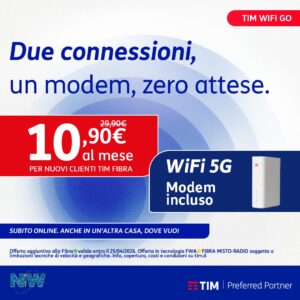 Con TIM WIFI GO in attesa della fibra ottica Tim ti riserva un’offerta speciale a €10,90 al mese fino al completamento dell’attivazione.